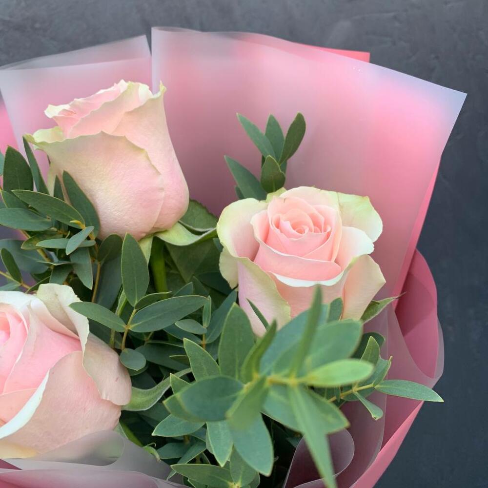 Роза – 3 шт.Эвкалипт – 1 шт.Упаковка дизайнерская – 2 шт.