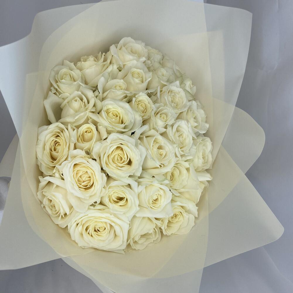 Роза – 31 шт.Упаковка – 3 шт.Атласная лента – 1 шт.