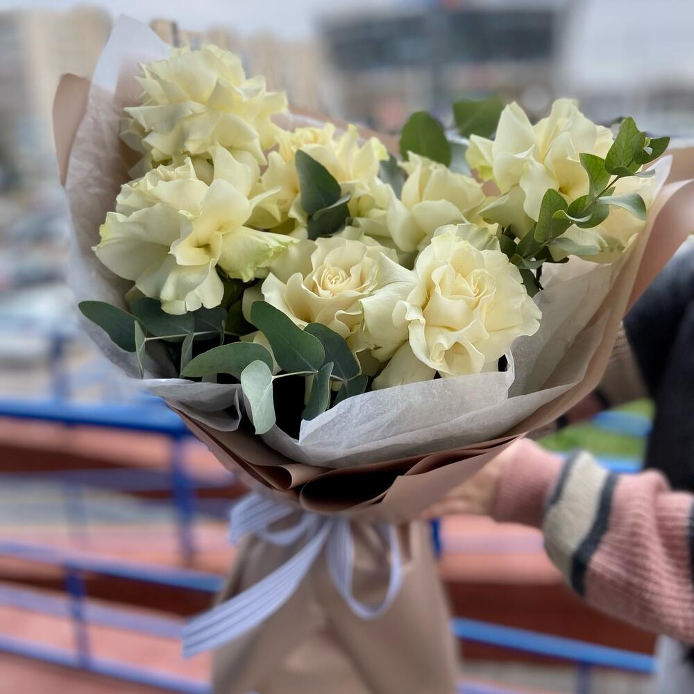 Эвкалипт – 5 шт. Упаковка дизайнерская – 1 шт. Французская роза – 7 шт.