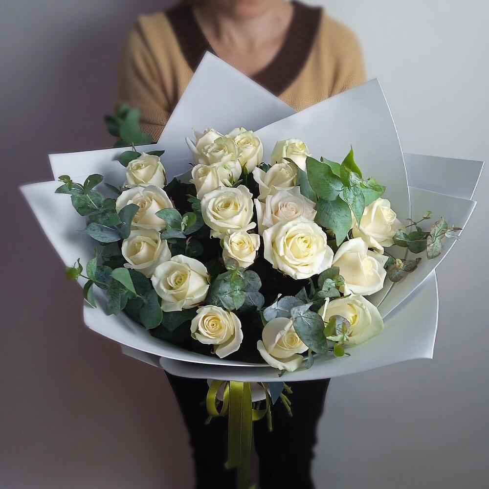 Букет из белых роз и эвкалипта