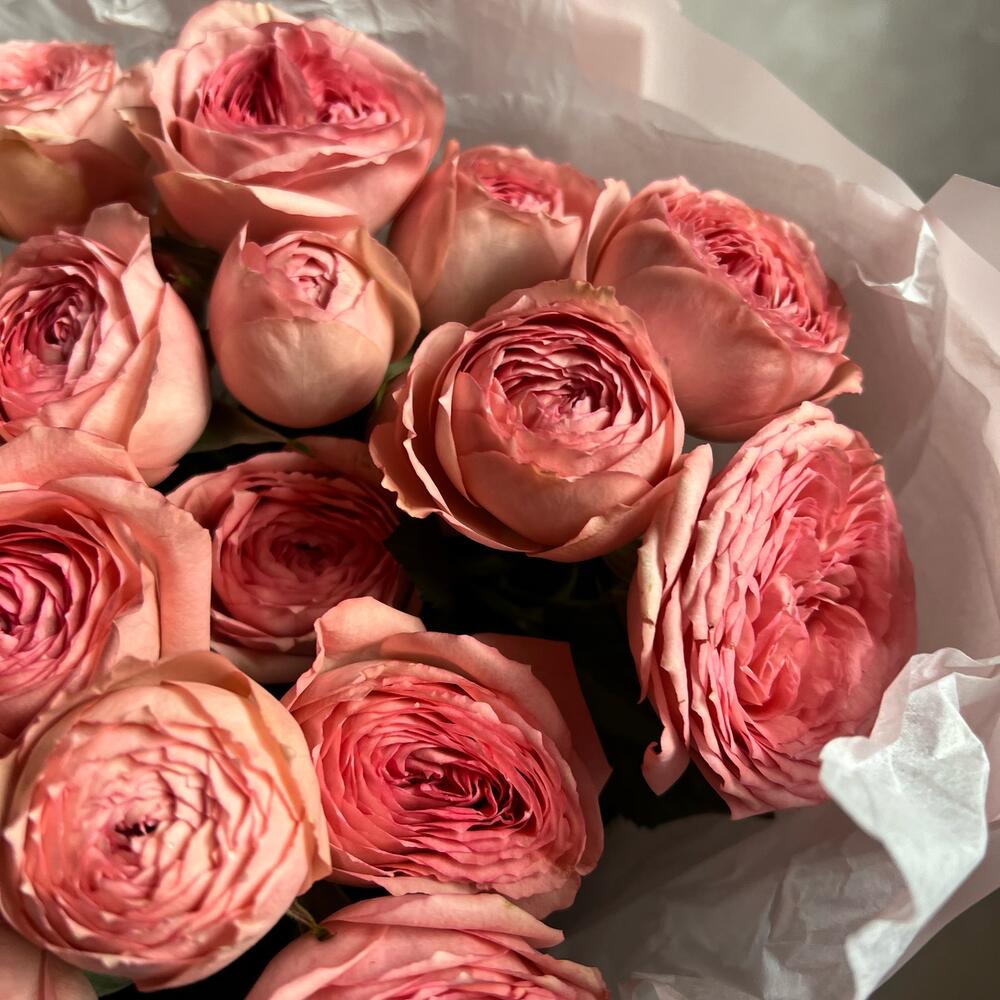 Букет из кустовой пионовидной розы "Mansfield Park"