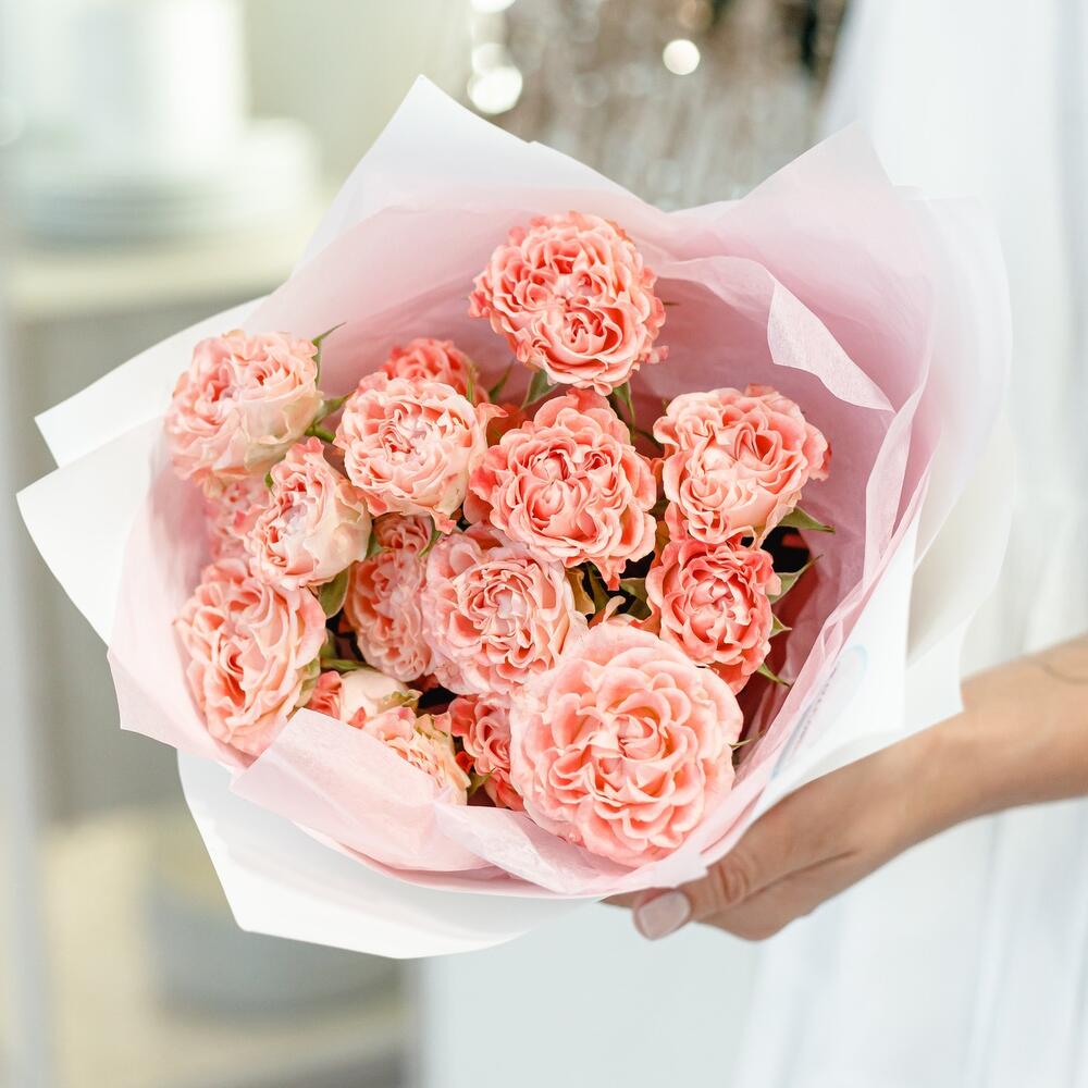 Букет из кустовых пионовидных роз «Идеал»