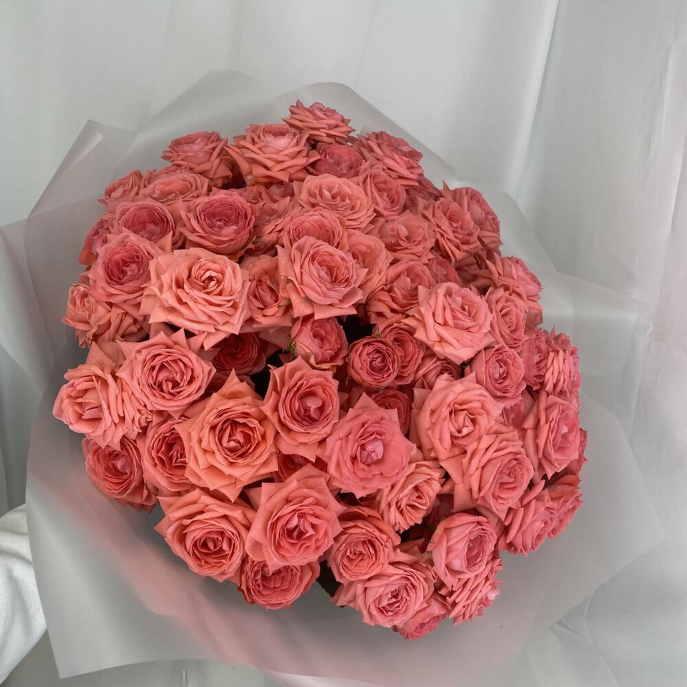 Кустовая роза – 25 шт.Упаковка – 3 шт.Атласная лента – 2 шт.