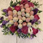 Роза Эквадор – 5 шт.Фисташка – 2 шт.Упаковка дизайнерская – 1 шт.Коробка сердце – 1 шт.Лизиантус микс – 10 шт.Клубника в шоколаде – 20 шт.
