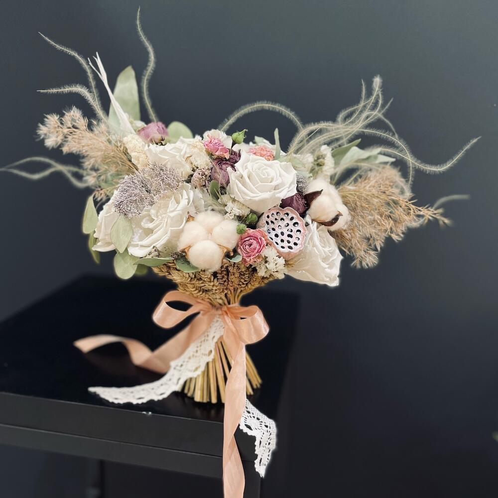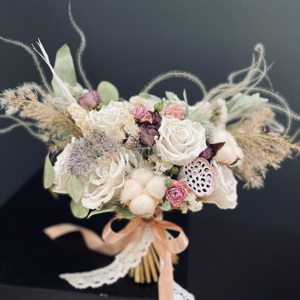 Букет невесты из сухоцветов и стабилизированных роз