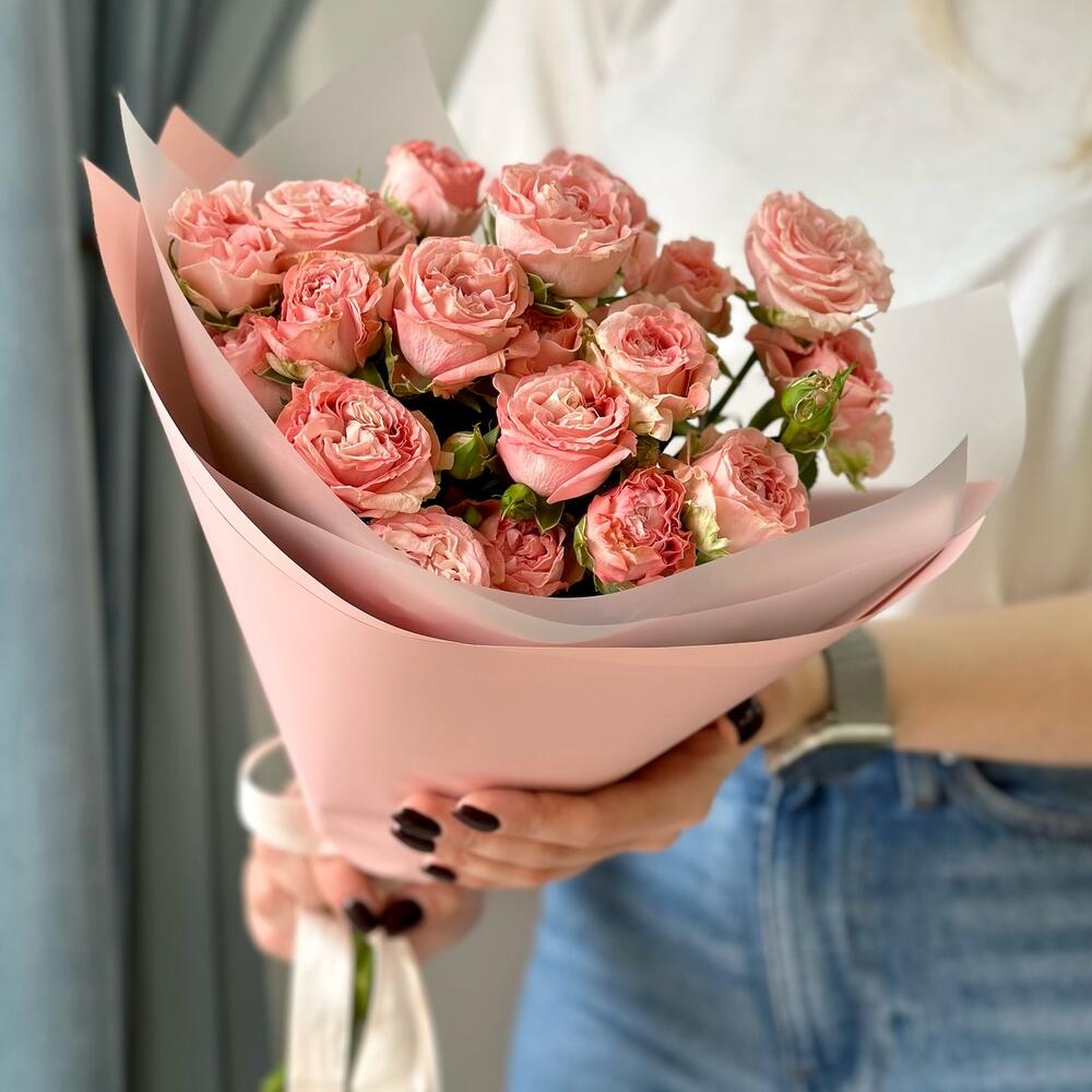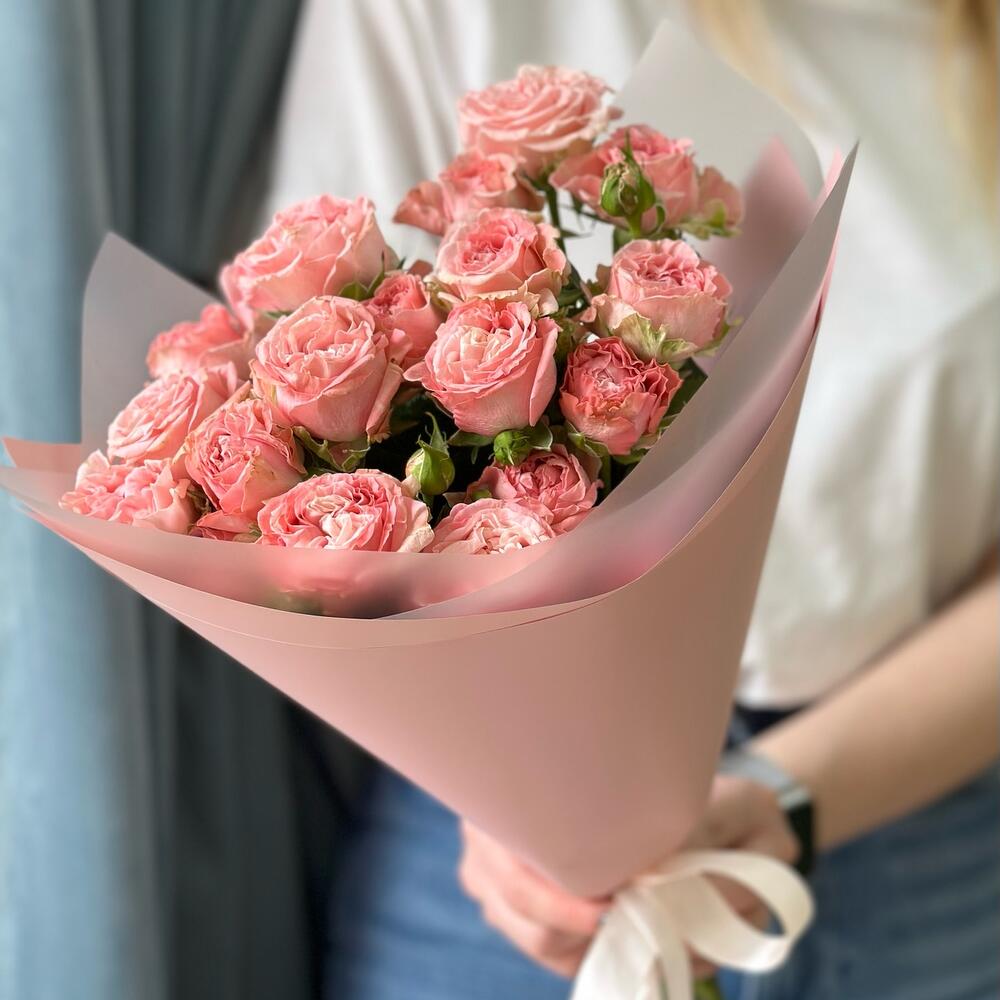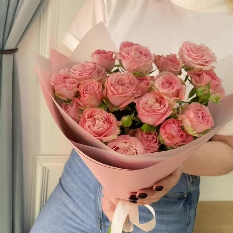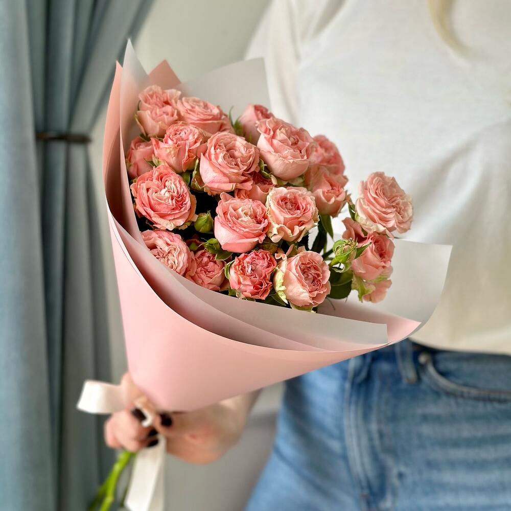 Большой букет из кустовых пионовидных роз Мадам Бомбастик