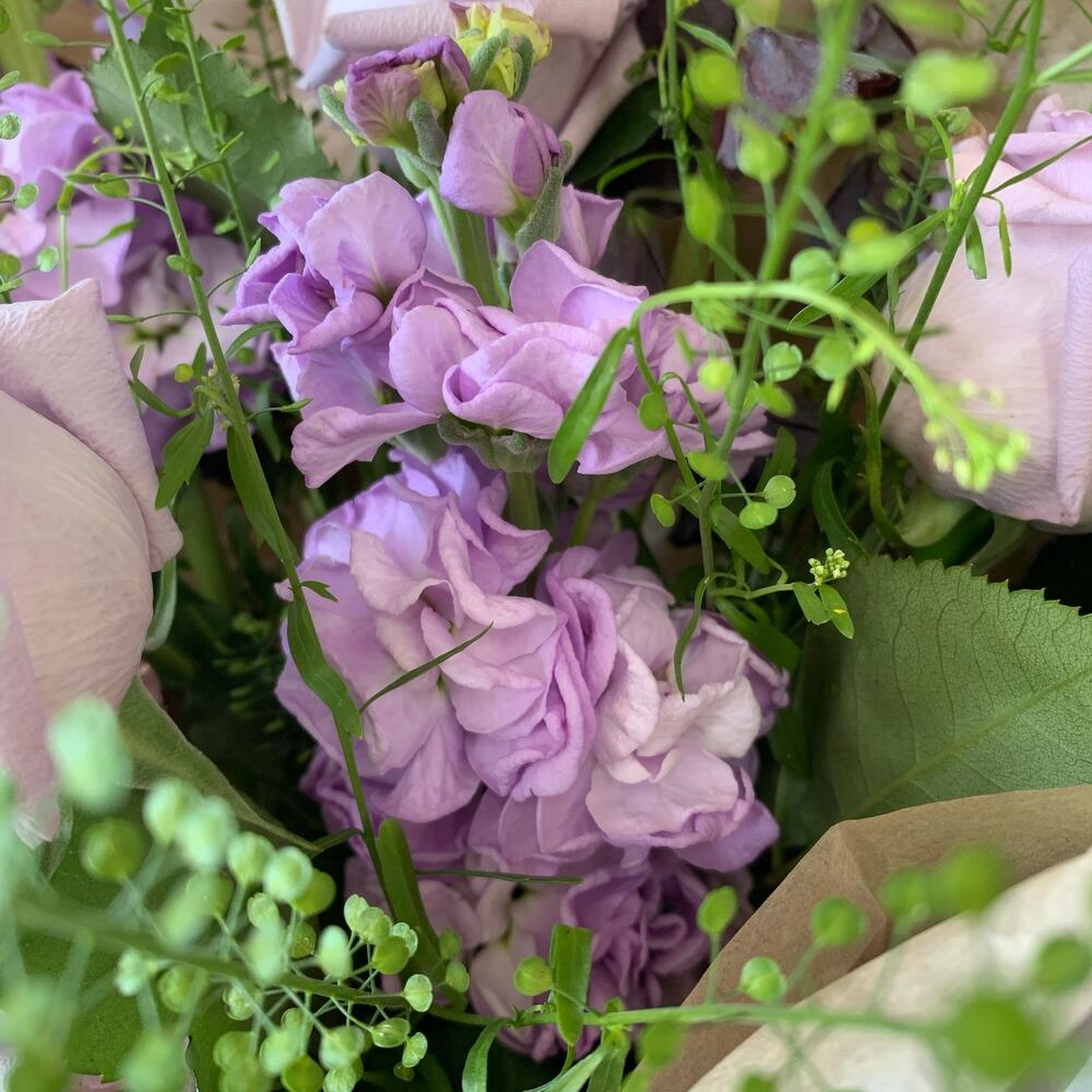 Букет Лилас из кустовых пионовидных роз и диантуса