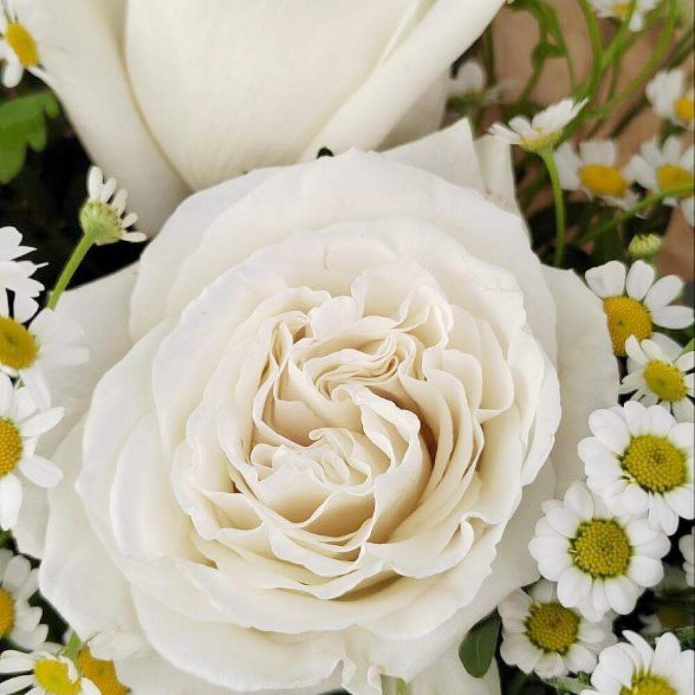 Букет с белой розой и ромашками