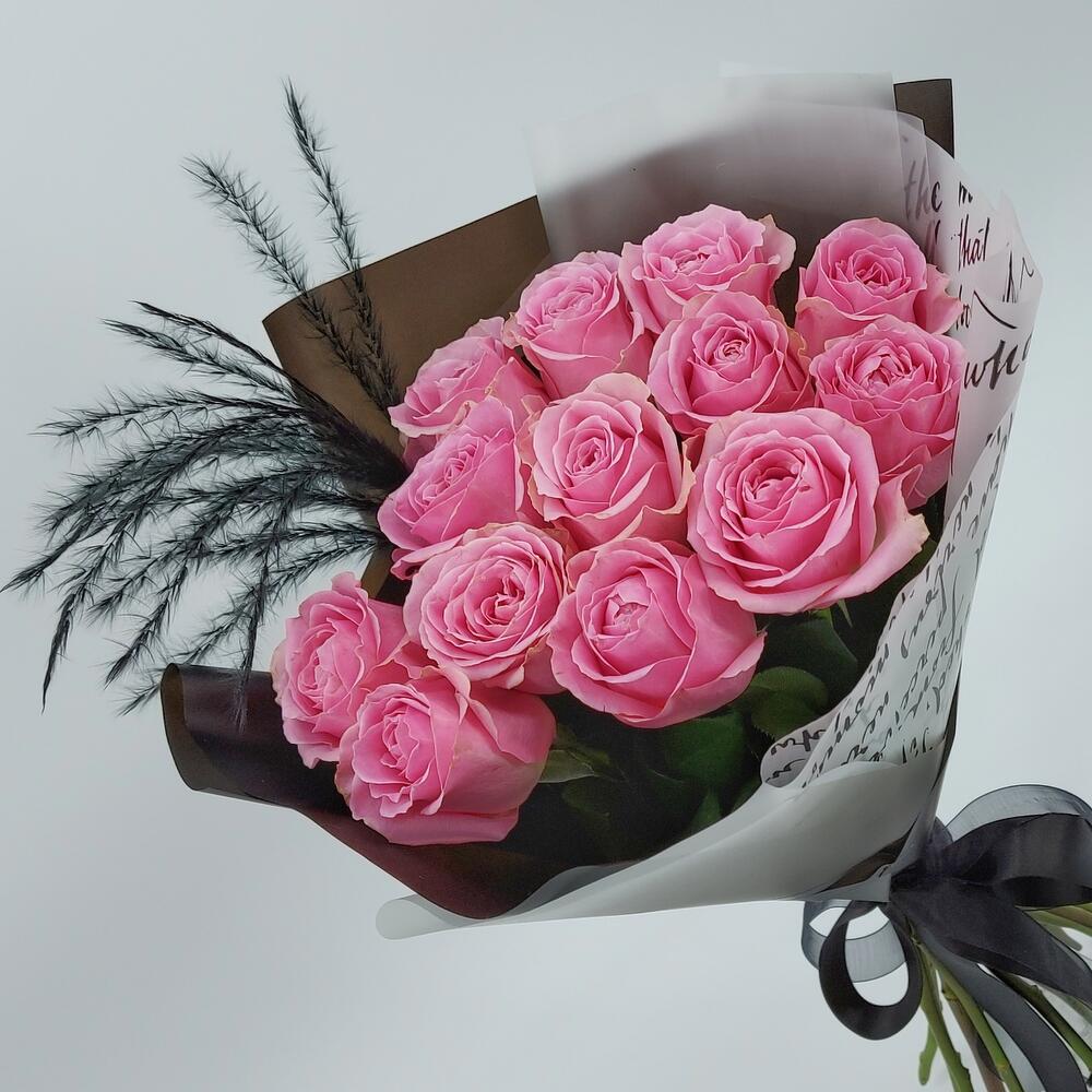 Роза Эквадор – 13 шт.Упаковка дизайнерская – 1 шт.ковыль крашеный – 1 шт.