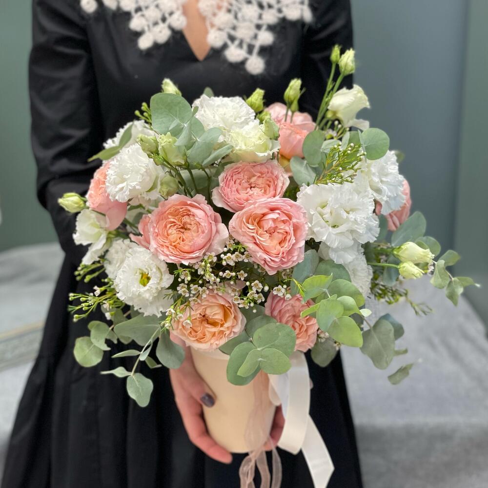 “В твоих глазах”: нежная шляпная коробка с французскими розами