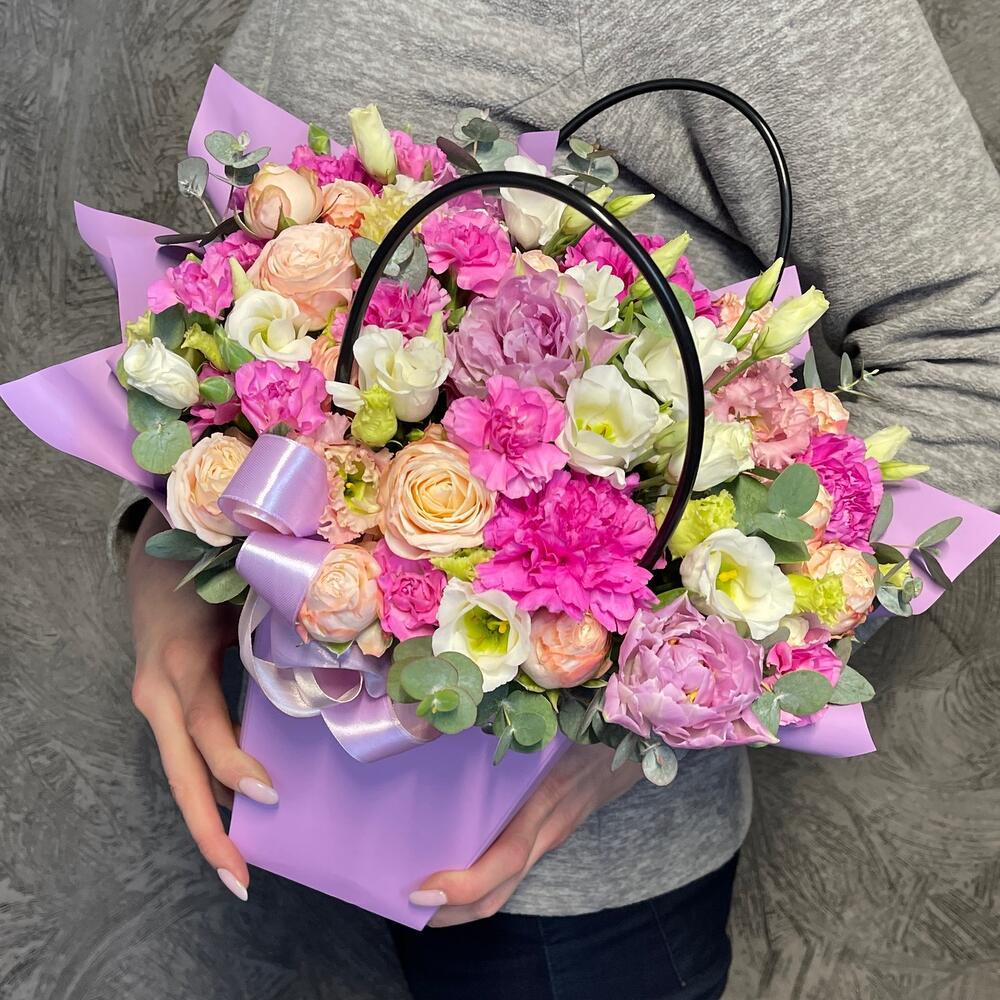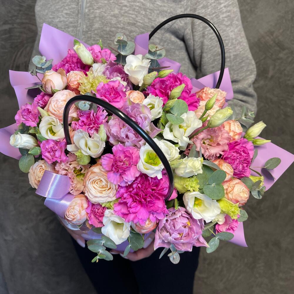 кустовая бомбастик роза – 3 шт.Лизиантус – 5 шт.
