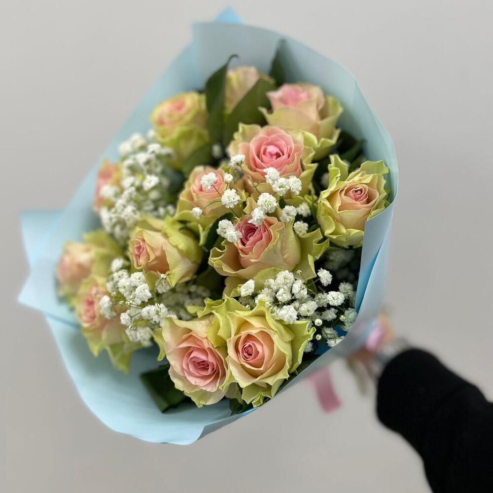 Роза – 13 шт.Упаковка – 1 шт.гипософила – 1 шт.