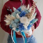 Букет из ароматных пионовидных роз сухоцветов и эвкалипта