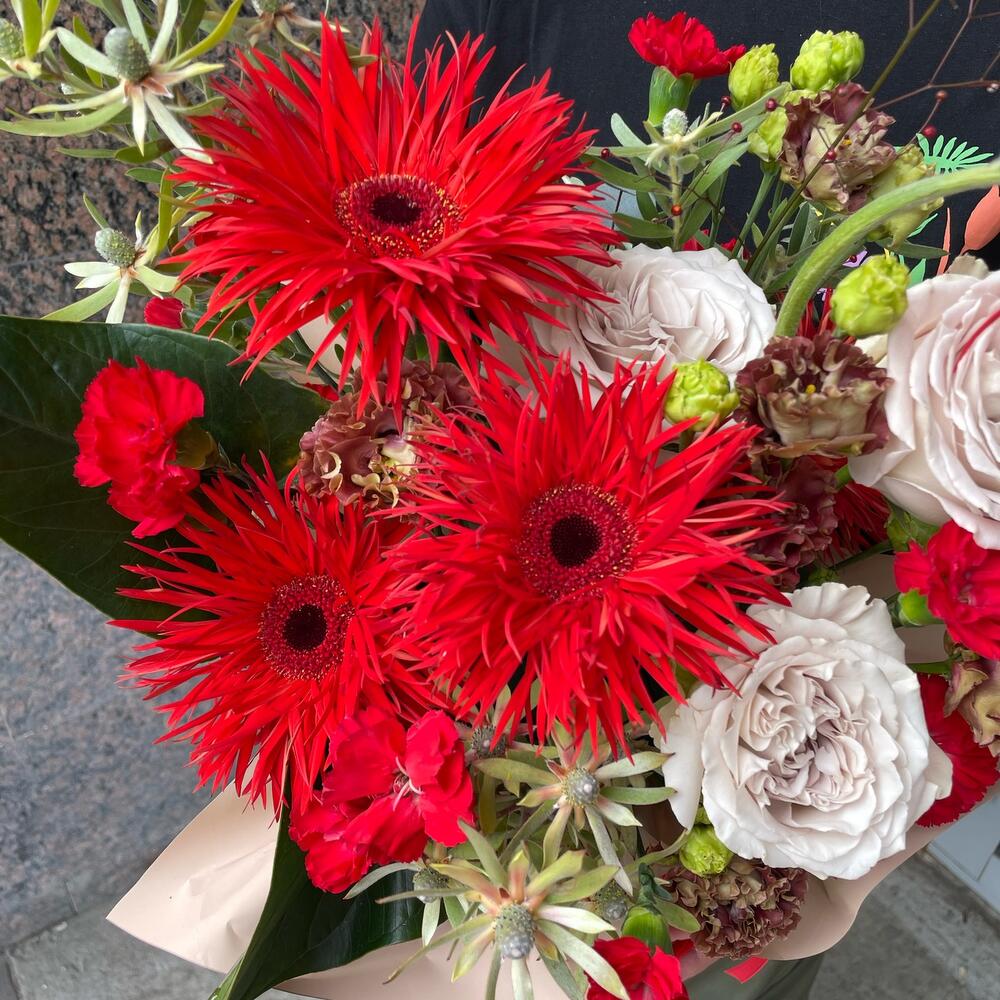 Категорий: Гвоздики, Герберы, Кустовые розы, Лизиантусы, Пионовидные розы, Розы