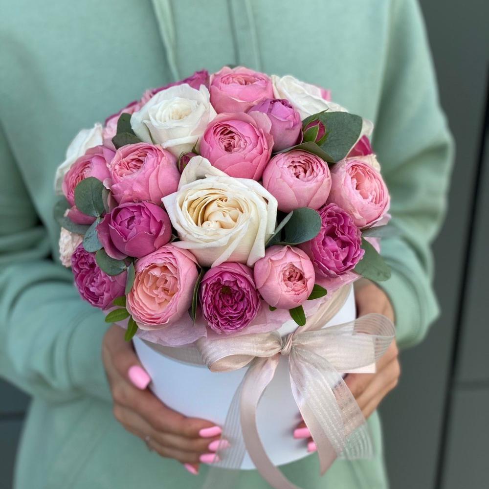 Коробка из одноголовых и кустовых пионовидных роз!