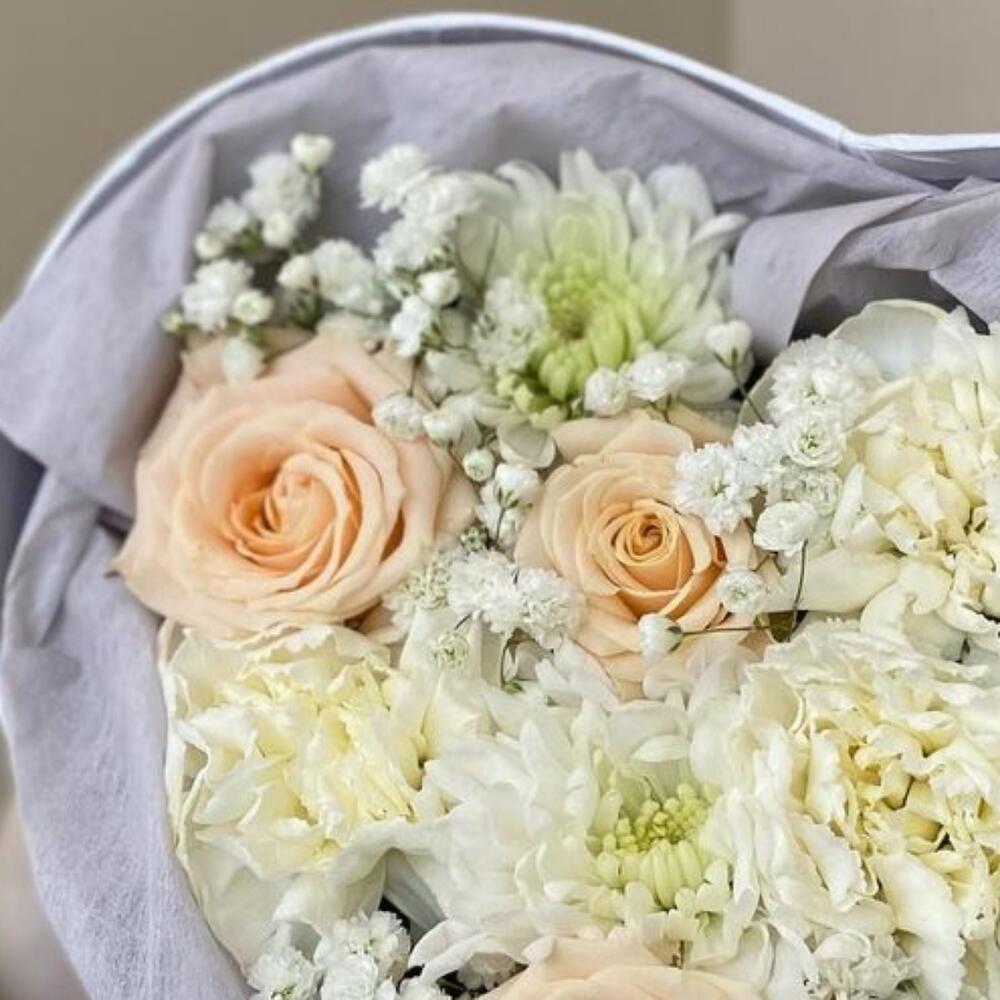 Категорий: Гвоздики, Гипсофила, Кустовые розы, Розы, Хризантемы