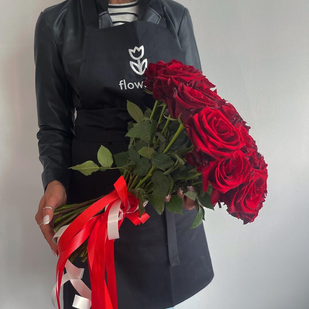 ленты атласные – 2 шт.красная роза рен наоми – 39 шт.