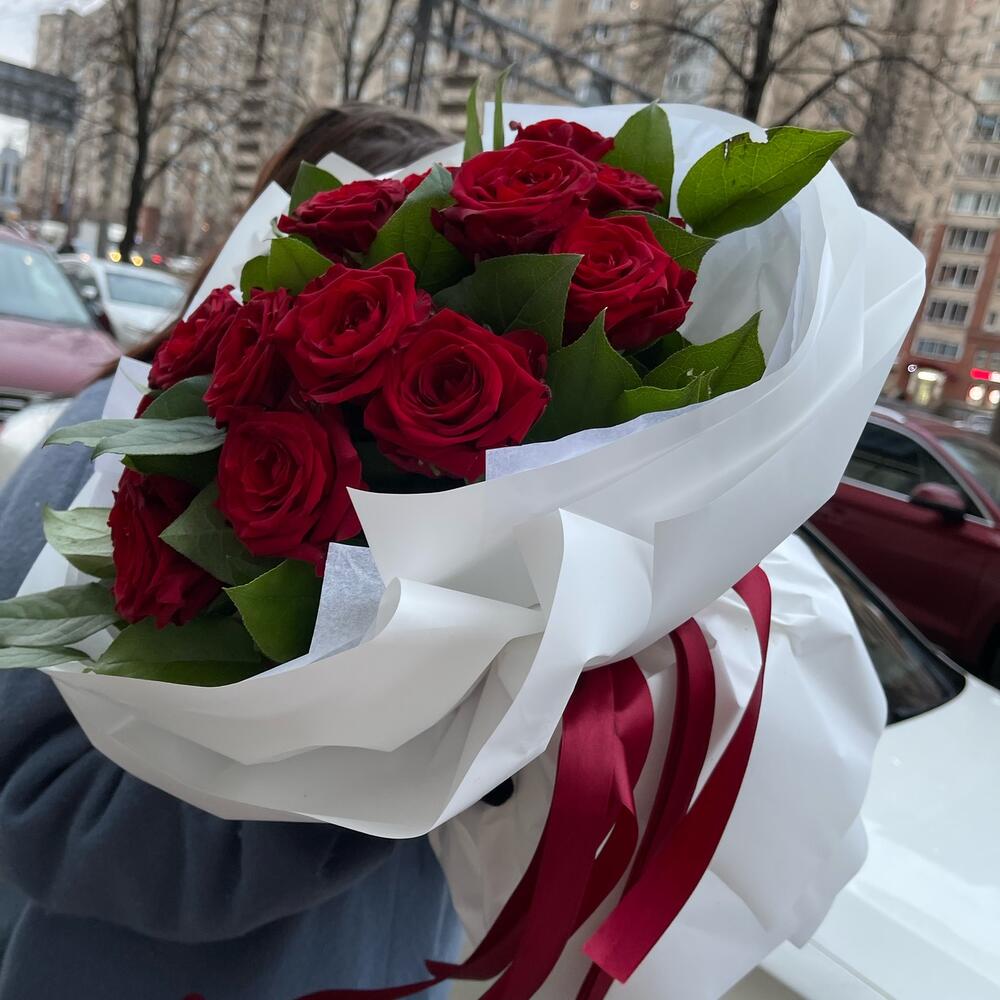 Пленка матовая – 6 шт.Салал пучок – 1 шт.Красная роза россия – 15 шт.