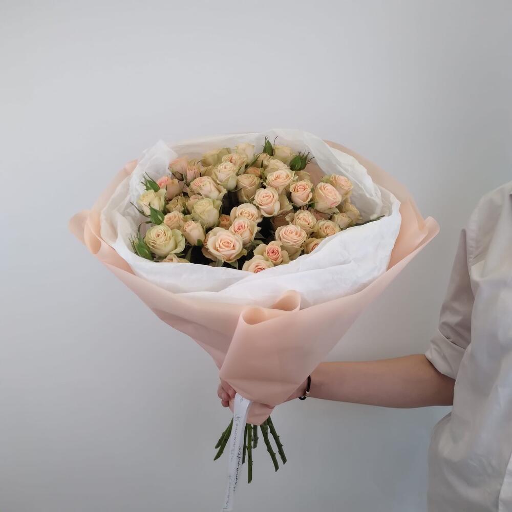 Кустовая роза – 9 шт.Тишью – 3 шт.Упаковка дизайнерская – 1 шт.