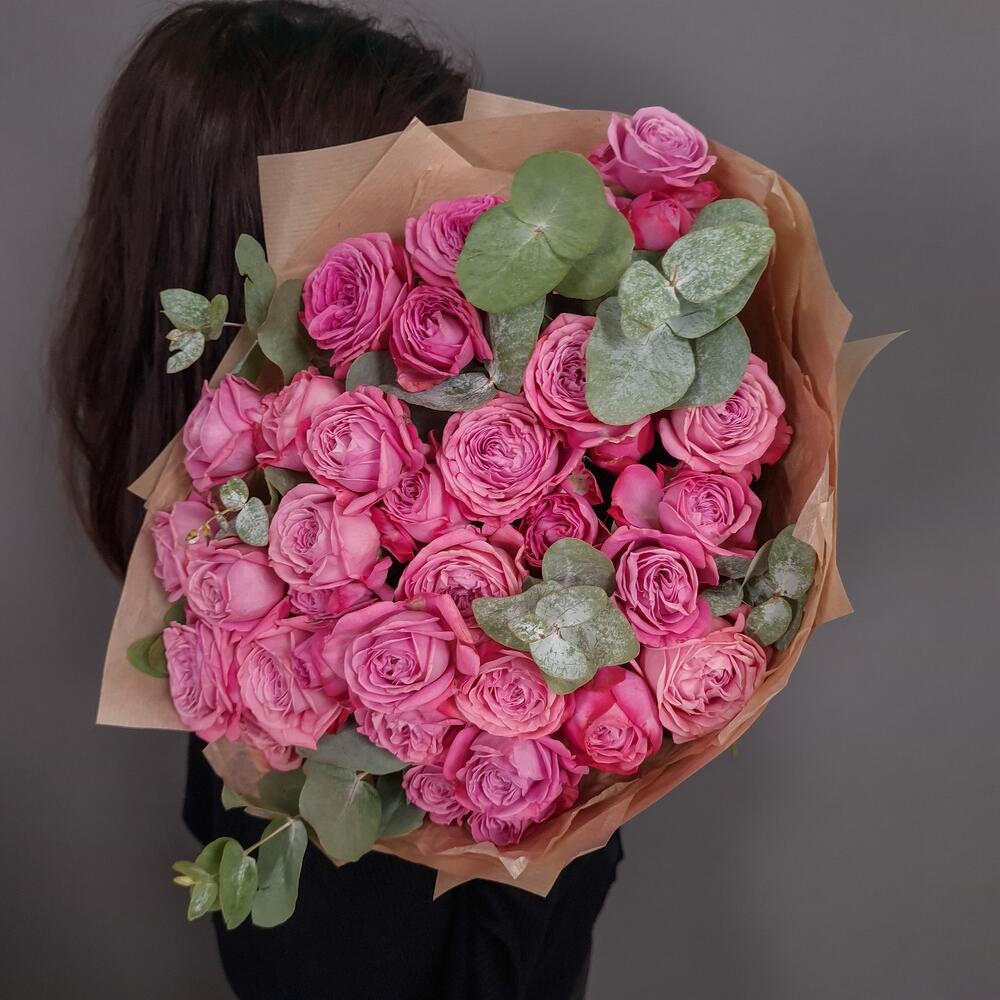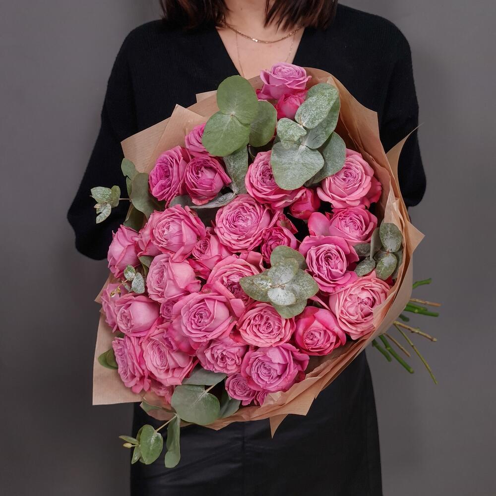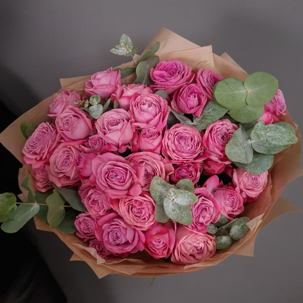 Эвкалипт – 2 шт.Упаковка – 1 шт.Аквапак – 1 шт.питательная смесь для срезанных цветов – 2 шт.роза кустовая артезия – 11 шт.