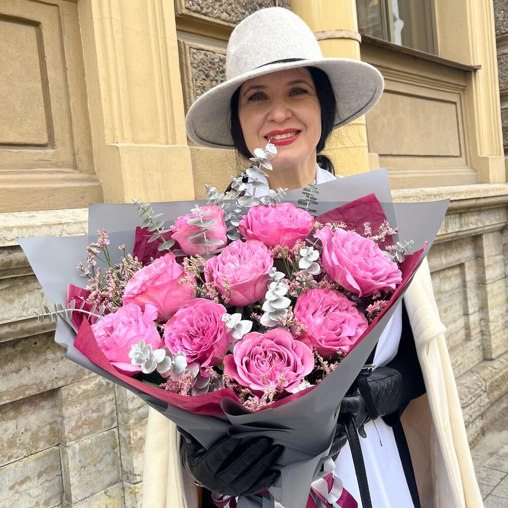 Моно букет из французской пионовидной розы