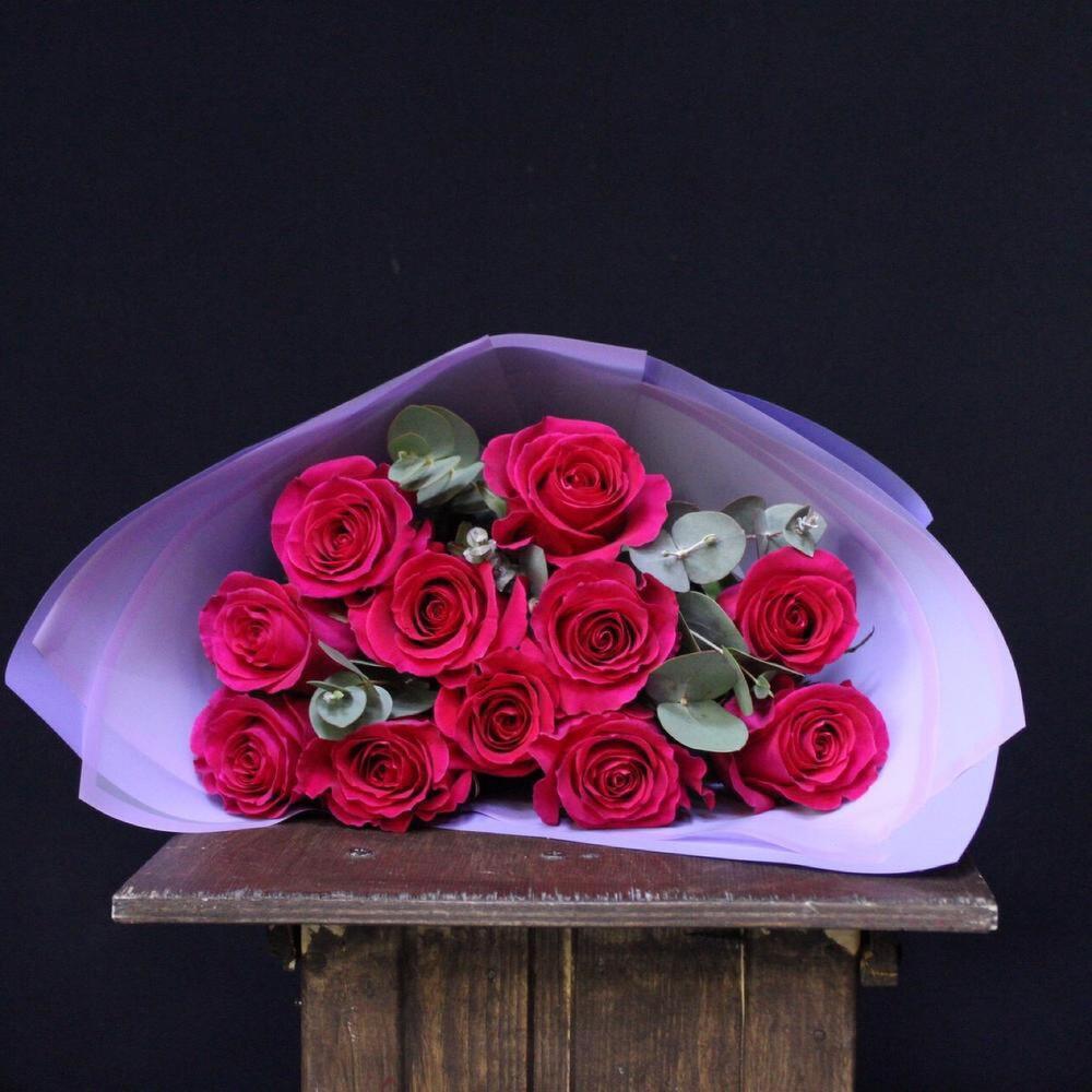 mono bouquet 69 из 11 роз сорта pink floyd с эвкалиптом