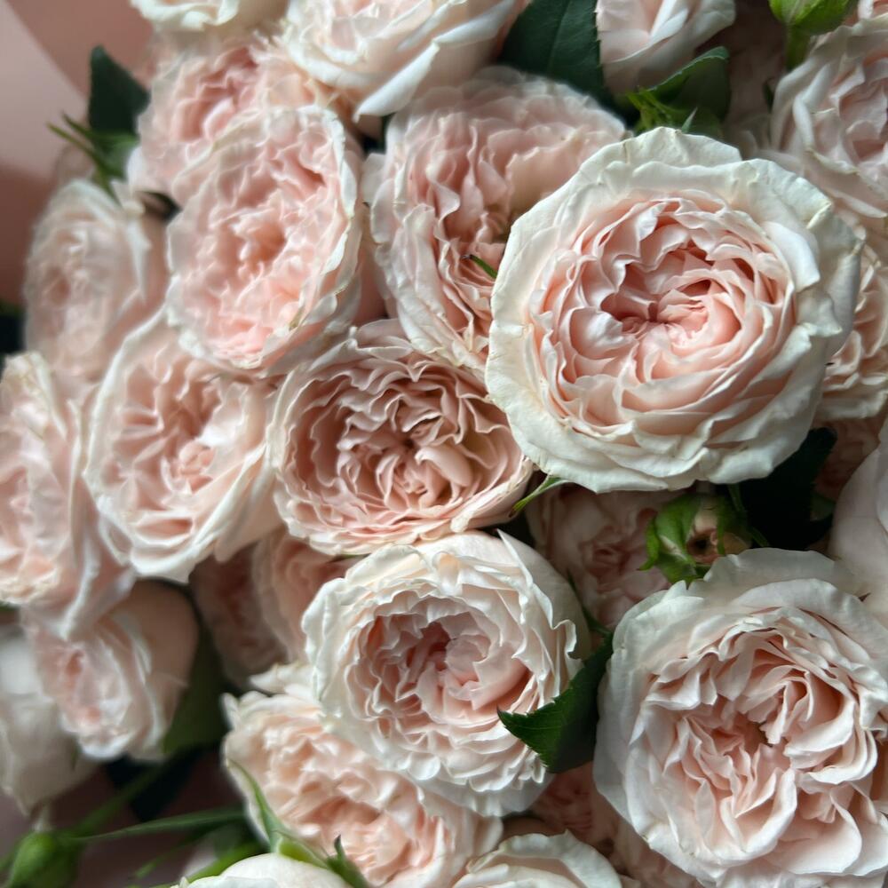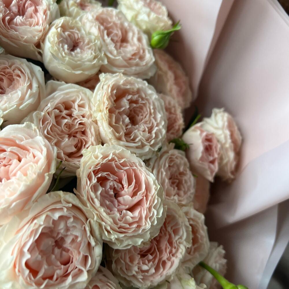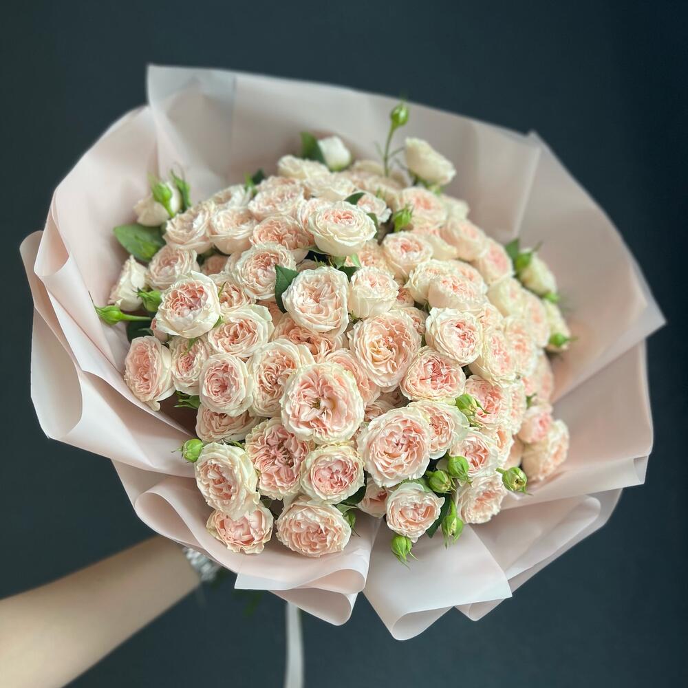 Атласная лента – 1 шт.Кустовая пионовидная роза – 21 шт.декоративная упаковка – 3 шт.