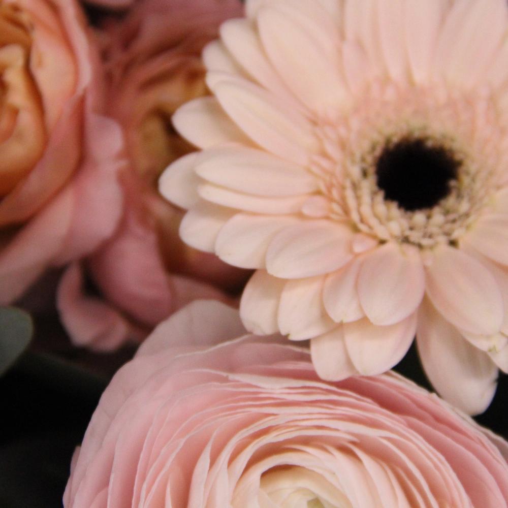 Букет из ромашек и персиковых диантусов "Ваниль"
