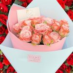 Пионовидная кустовая роза – 7 шт. Упаковка дизайнерская – 1 шт. Открыточка с вашими пожеланиями – 1 шт. инструкция по уходу за цветами – 1 шт.