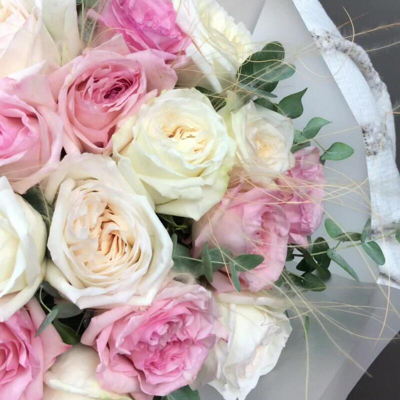 Эвкалипт – 2 шт.Упаковка дизайнерская – 1 шт.Стифа – 3 шт.роза ароматная охара – 19 шт.