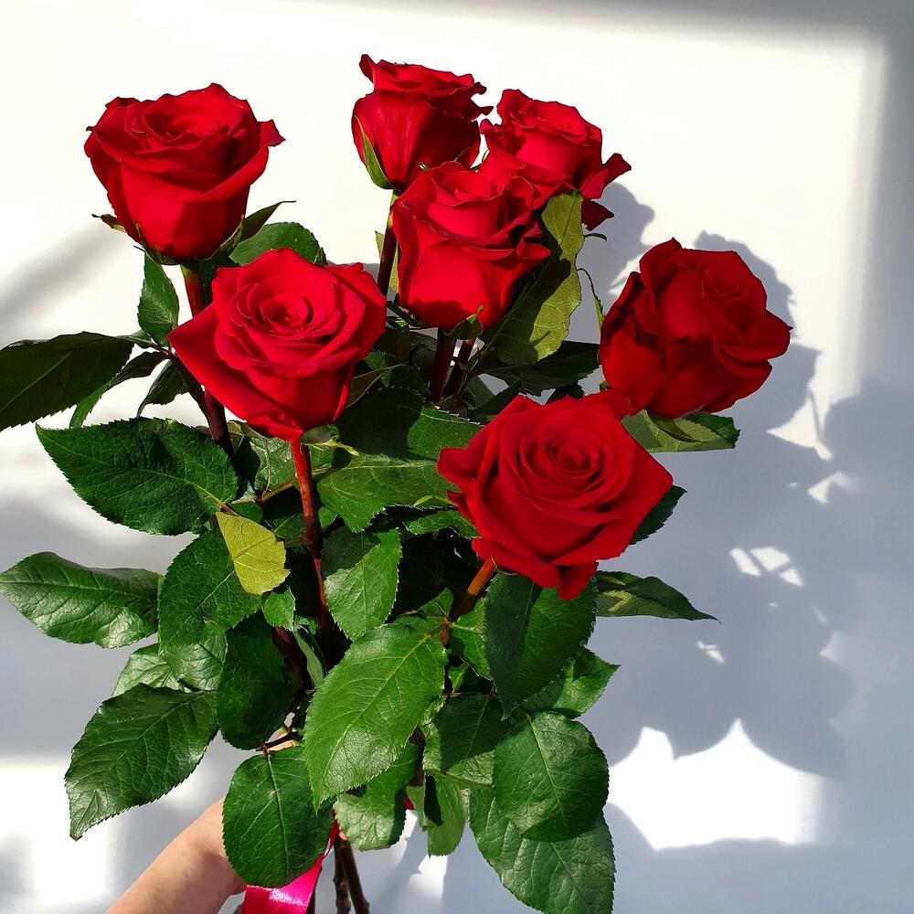 Роза – 7 шт.Лента атласная – 1 шт.