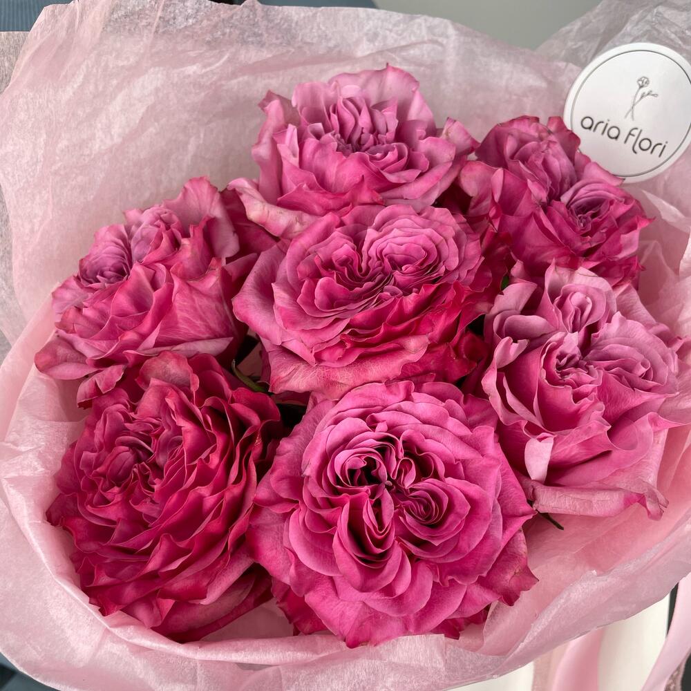 Роза Эквадор – 7 шт.Упаковка дизайнерская – 1 шт.Сумочка – 1 шт.любовь флориста – 1000 шт.записка с вашим текстом – 1 шт.советы по уходу за срезанными цветами – 1 шт.шоколадный медиан ручной работы – 1 шт.