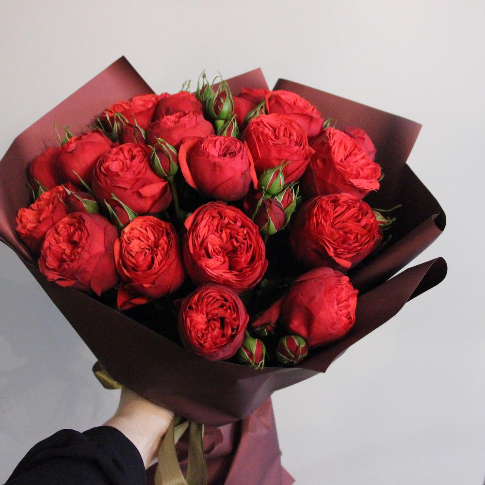 Роза пионовидная Red Piano – 19 шт.Упаковка дизайнерская – 2 шт.Лента атласная – 1 шт.