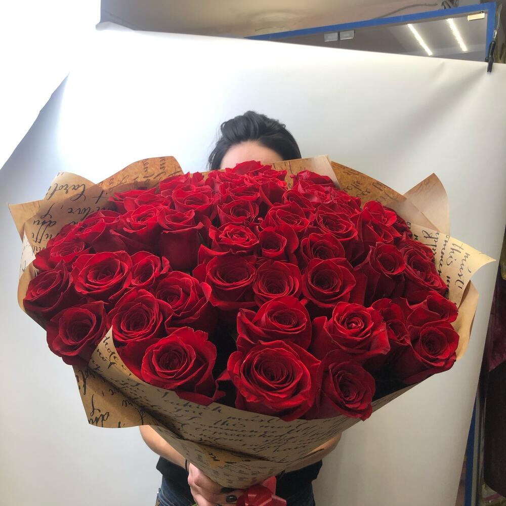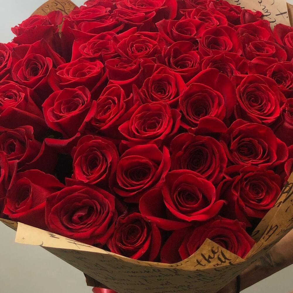 розы эквадор – 51 шт.Крафт – 2 шт.Лента – 1 шт.