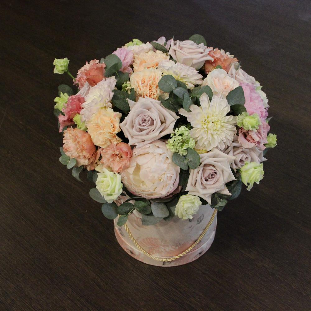 Гвоздики, Лизиантусы, Розы, Тюльпаны