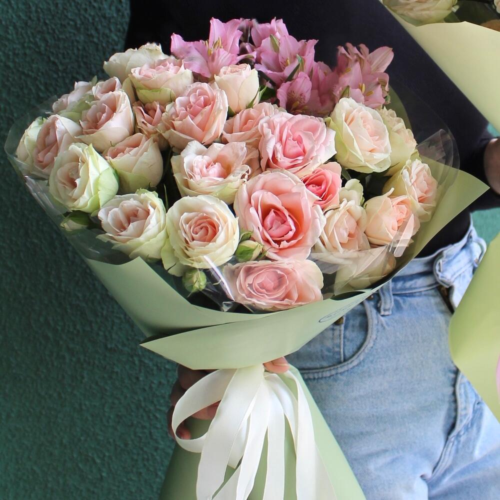 Альстромерия – 2 шт. Кустовая роза – 5 шт.
