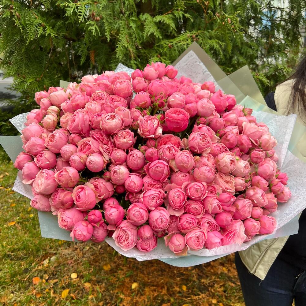 Вип букет из кустовых пион роз. Это прекрасные кустовые розы, которые при раскрытии напоминают пион . По этому их так любят девушки. У нас самая быстрая доставка, по этому если букет вам нужен срочно. Напишите нашим менеджерам и мы отправим букет максимально быстро .