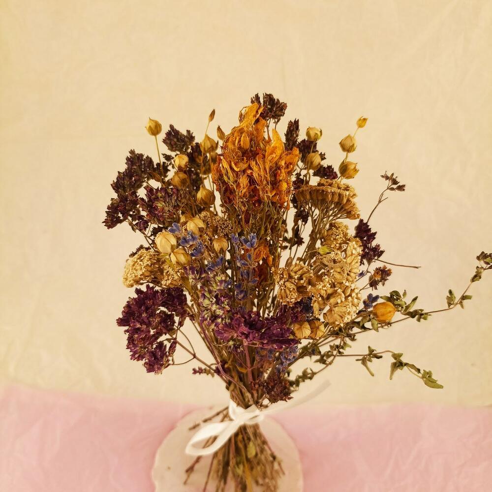 «Лавандовое созвездие» Букет из розы, гвоздики, статица и хлопка