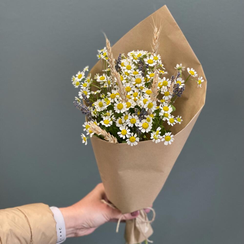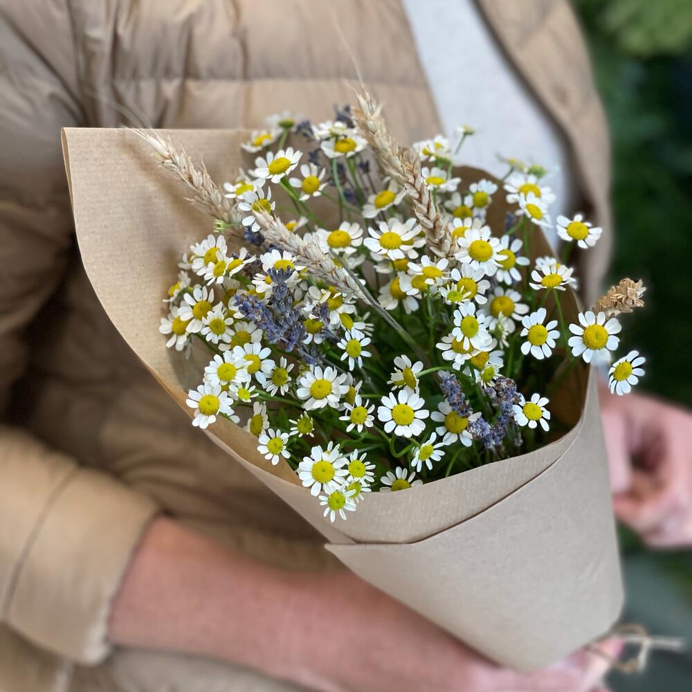 Букет с воздушными ромашками и лавандой “Полевой”