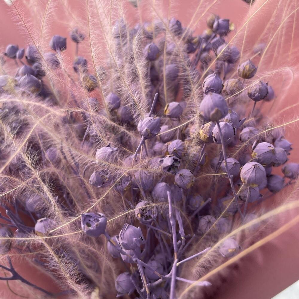 лëн сухоцвет – 10 шт.Ковыль – 9 шт.Упаковка дизайнерская – 4 шт.Лента атласная – 1 шт.