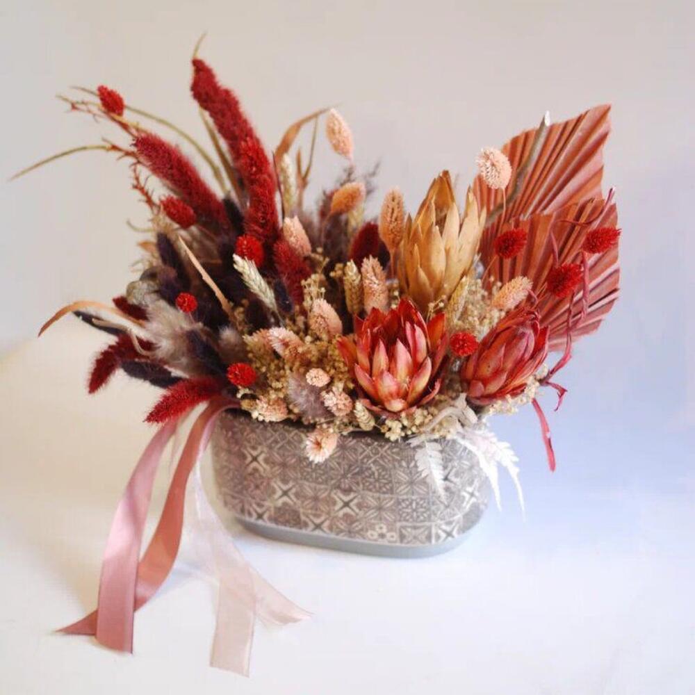 Интерьерная композиция из сухоцветов в кашпо