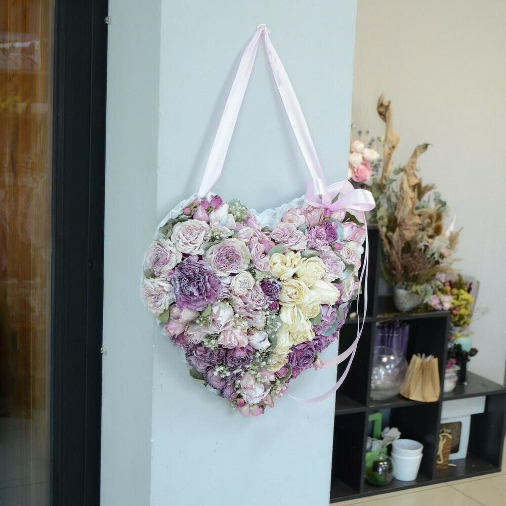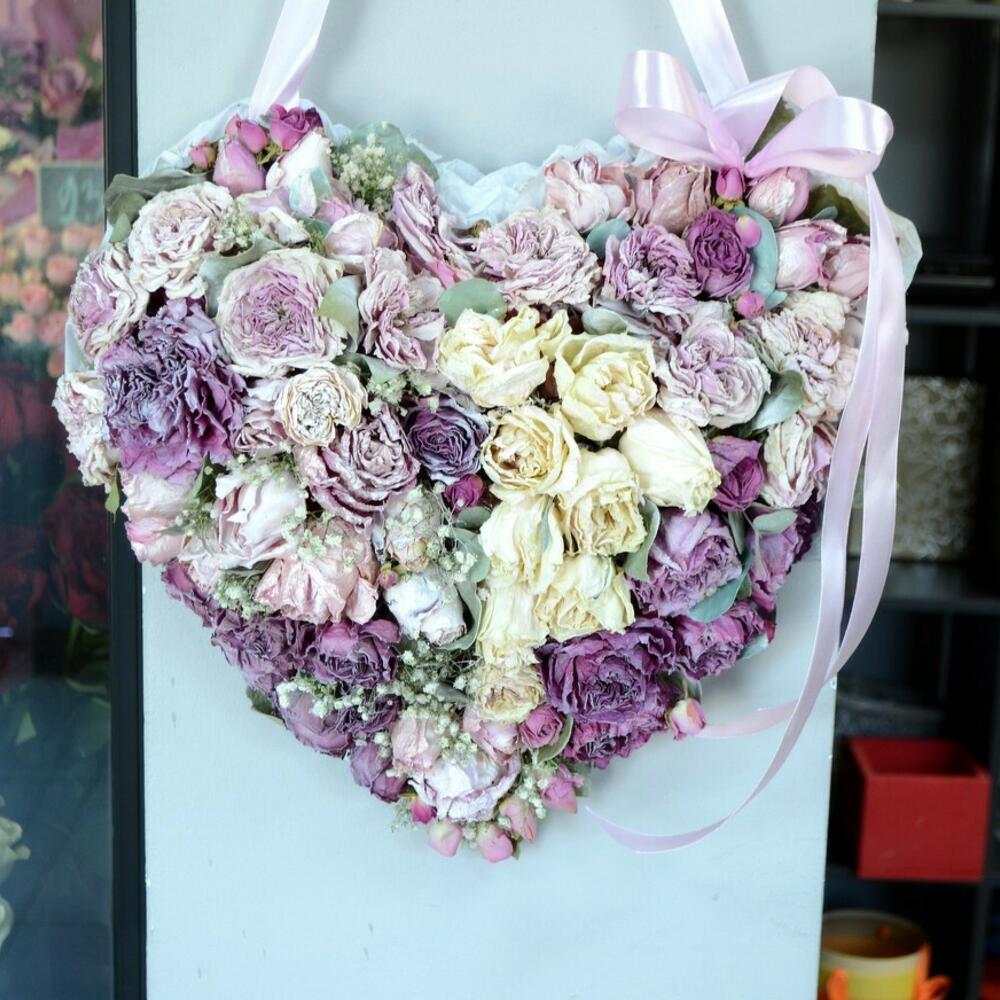 Интерьерный букет из сухоцветов в виде сердца