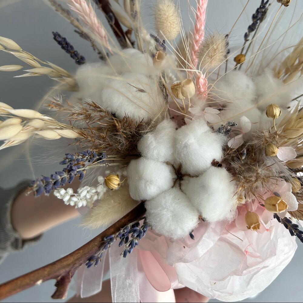 Композиция из сухоцветов с хлопком и лавандой