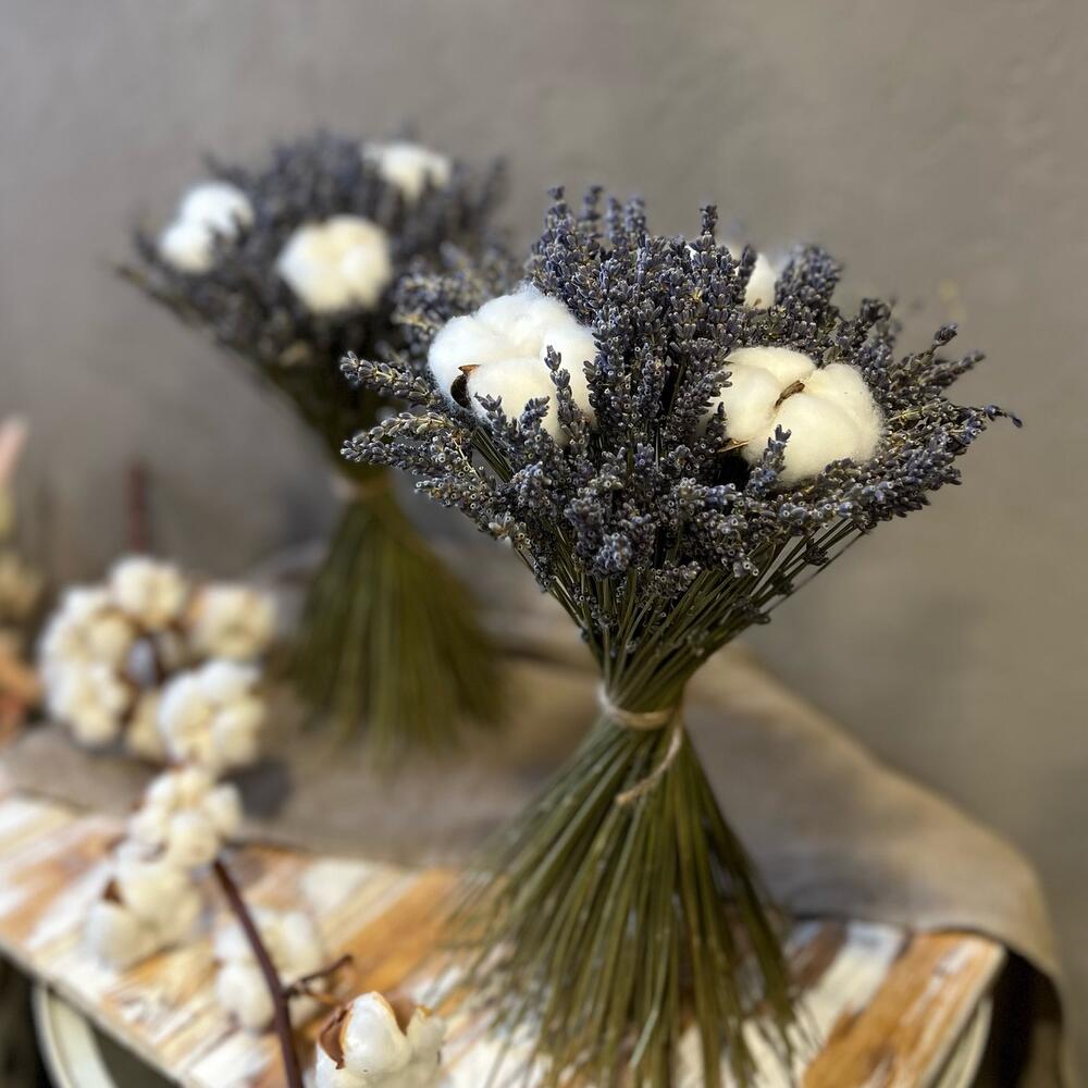 лаванда банч сухоцвет – 1 шт.Хлопок натуральный – 3 шт.Упаковка дизайнерская – 1 шт.