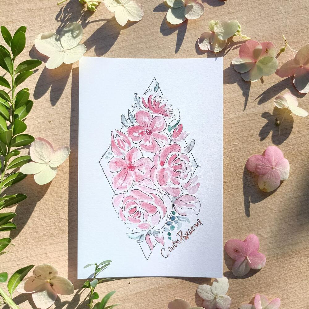Открытка с любовью нарисована художником акварелью и отпечатана на плотной бумаге. Таких открыток нет нигде, кроме нашего магазина К каждой открытке Вы можете прислать текст в чат, который мы напечатаем в нескольких вариантах. Вы сможете выбрать тот шрифт, который Вам больше по душе, а мы аккуратно приклеим его к открытке.Открытку доставляем в ярком красном конверте, заклеенном сердечком, а внутрь кладём сухоцветы – сердечки из лепестков, лепестки, цветы и пару наклеек-сердечек❤Ждём Ваш текст для открытки в чате