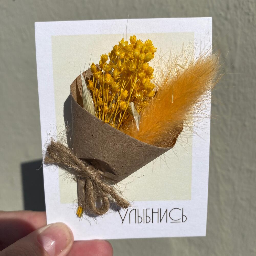 Открытка ручной работы с сухоцветами