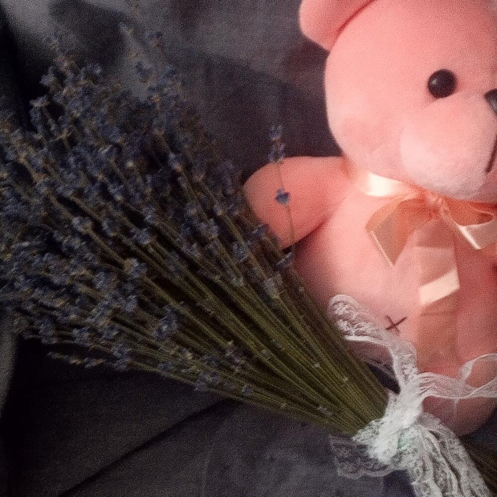 Лаванда (сухоцвет) – 85 шт.Лента Кружево – 1 шт.мишка плюшевый 23 см – 1 шт.