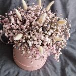 “Сиреневый туман” – композиция из гипсофилы в шляпной коробке