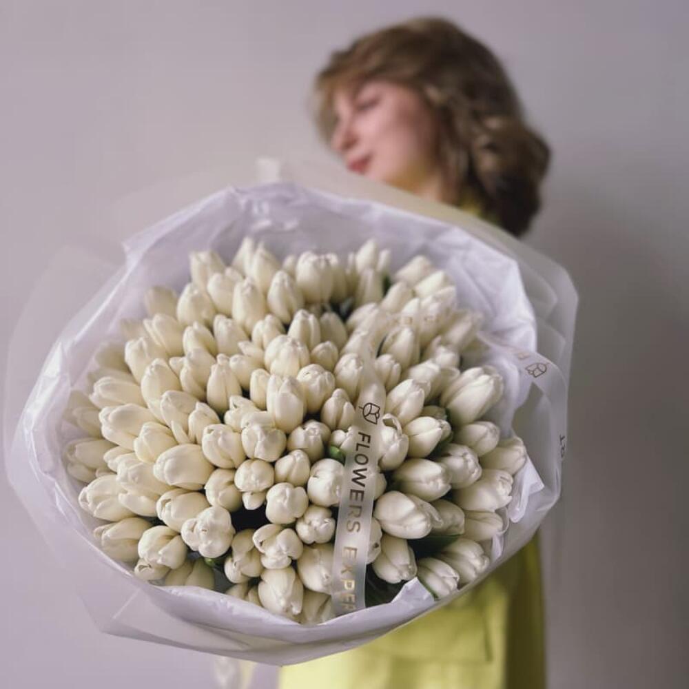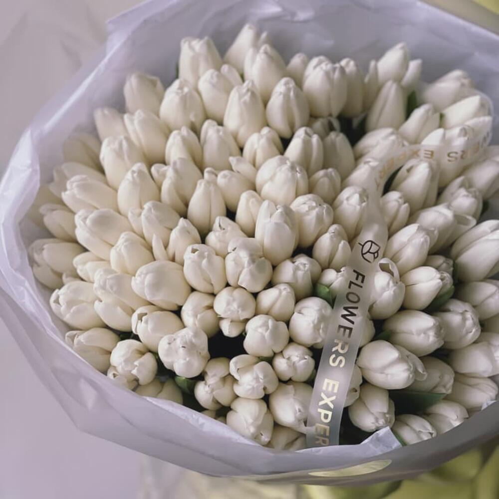 Букет из 101 белого тюльпана “SILK”