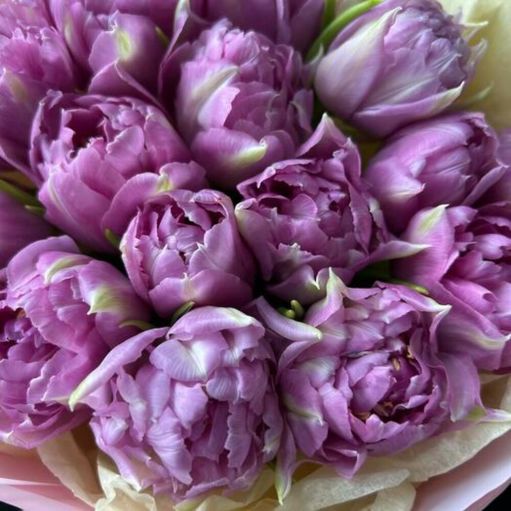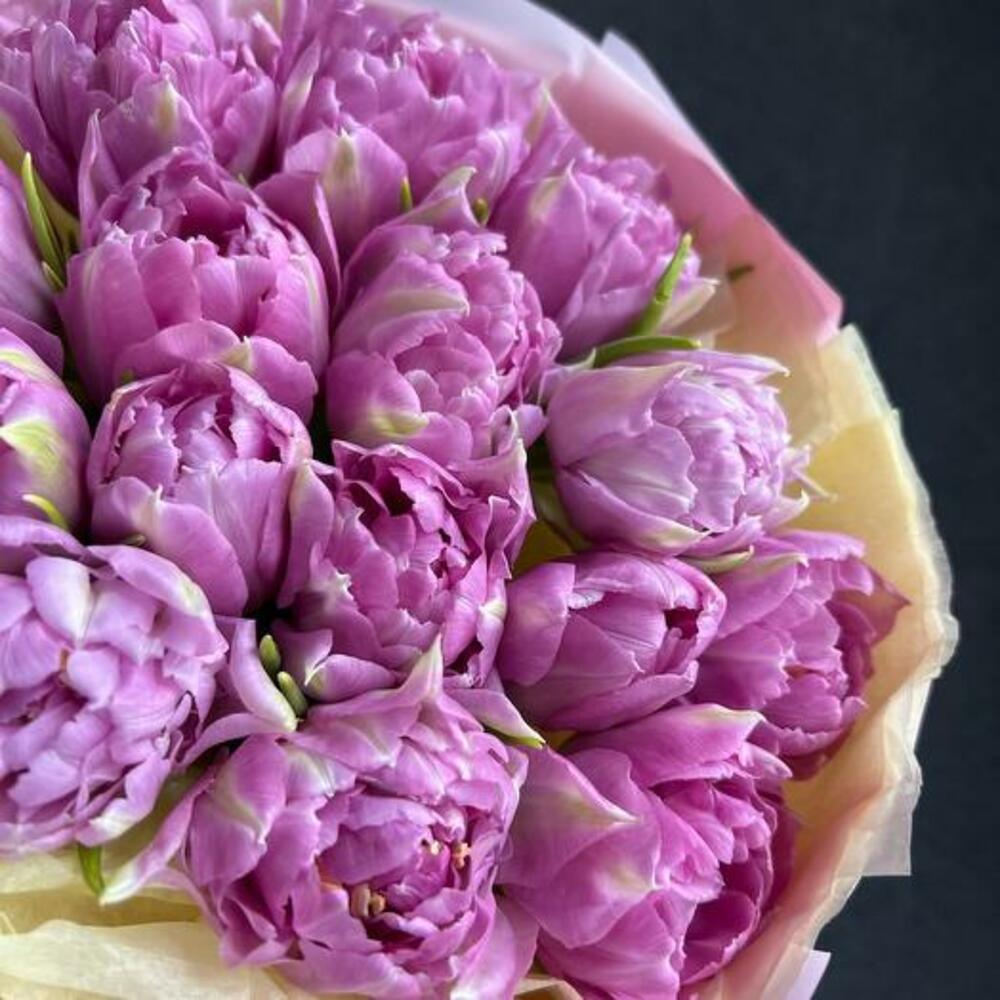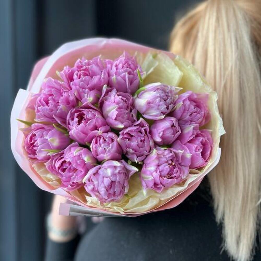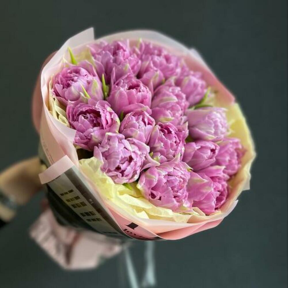 Монобукет 13.1 пион тюльпаны розово-сиреневые